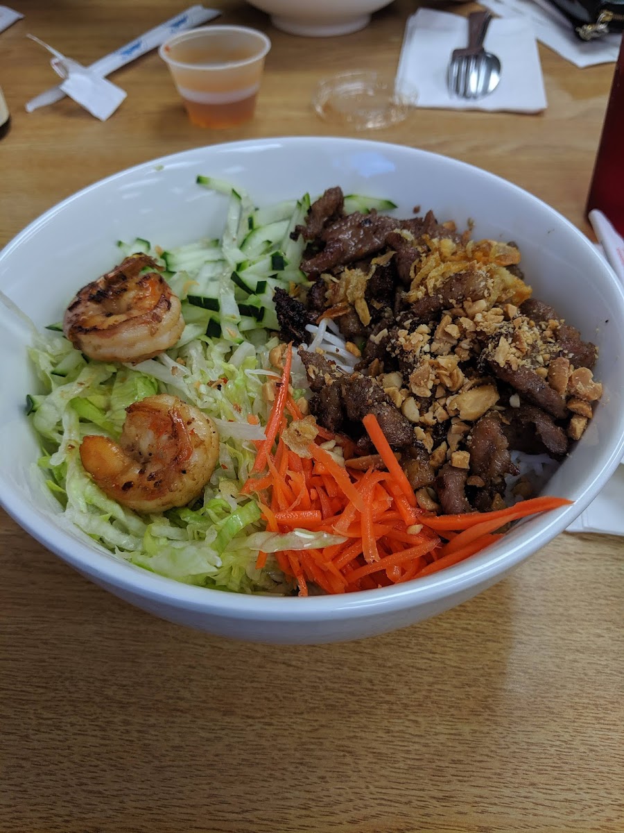 For a refreshing and light option, try the Fresh Spring Rolls Goi Cuon. These delicate rolls are filled with fresh herbs, vegetables, and shrimp or pork, wrapped in soft rice paper and served with a delicious peanut sauce. Another favorite is the Bun Thit Nuong - a vibrant Vietnamese vermicelli noodle bowl topped with grilled pork, shrimp, or beef, and garnished with fresh herbs and crunchy peanuts.